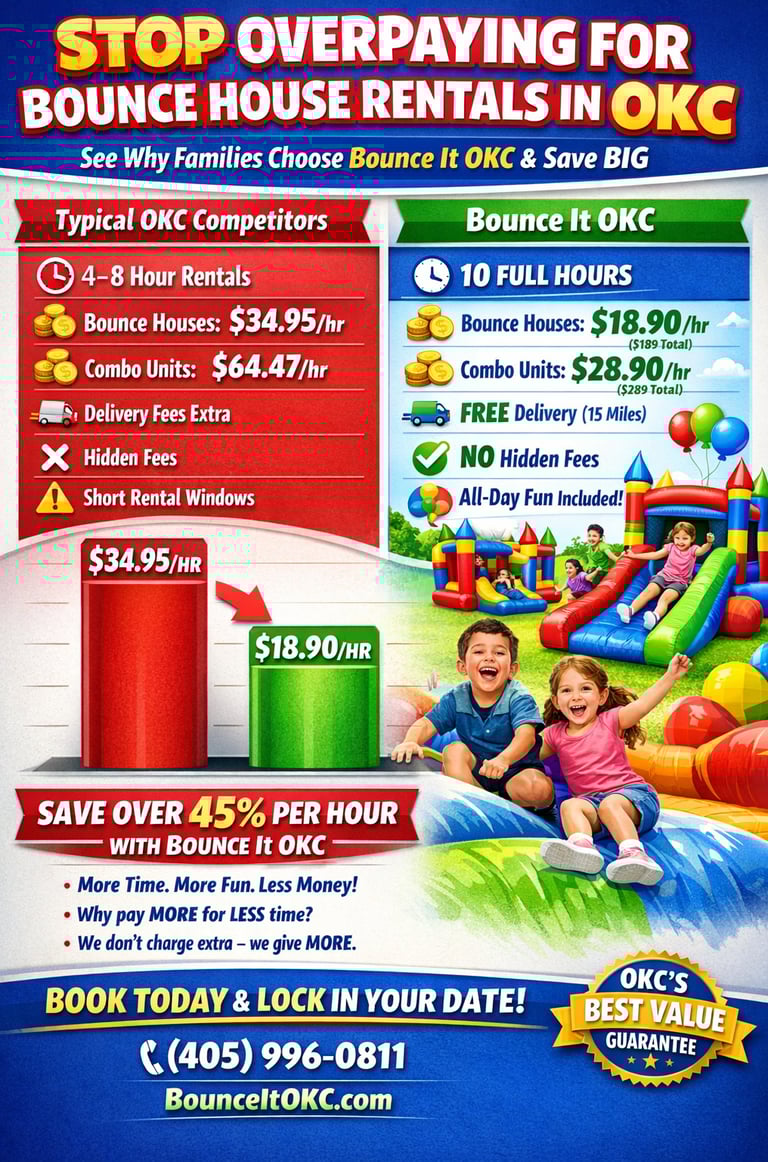 When you book with Bounce It OKC, you’re not just renting a bounce house — you’re getting the best value in the Oklahoma City metro.